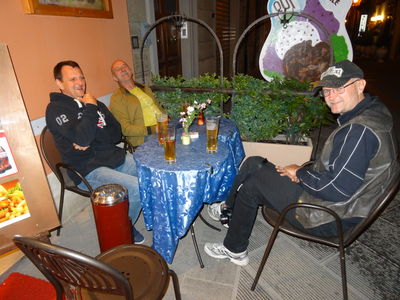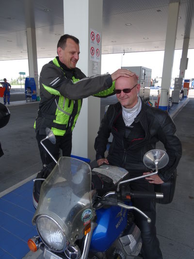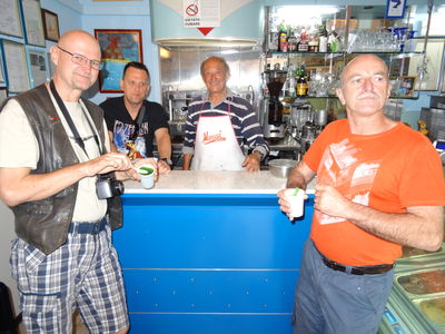 Amalfi (landschaftlich sehr schön, verkehrstechnisch eine Katastrophe – da musste beim Guzzi Andi seinem Moped nach einem einknicksler der Scheinwerfer neu justiert werden), Sapri (Geheimtip ist das Pup zur Lokomotive – extrem schwer zu finden), Tropea mit Frühschoppen und klassischem Friseurbesuch. Hier war mal ein Tag zum Entspannen.