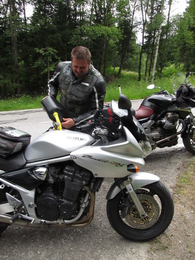 Ja es war wieder eine wilde Reise, so manches Moped wurde umgeschmissen (zweck´s dem patschert sein), der Tank bis aufs Staubtrockene leergefahren (weil in der Steiermark tanktechnisch ja eine Sahelzone ist), ein Helm im Bach versenkt, unerwarteter Ölaustritt bei einer Bayrischen beseitigt, ………………. wie gesagt eine Wilde Geschichte.