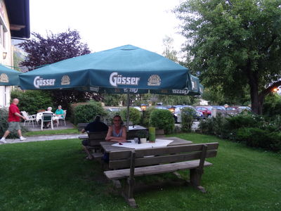 Schnell eine Salatplatte verspeist, dann weiter übern Felbertauern (der einen Runden Geburtstag feiert) bis Lienz. Iselsberg rein ins Mölltal bis kurz vorm Glockner, nach Döllach, wo unser altbekannter Dorfwirt Sperrtag hatte und wir so zum Nachbarn ausweichen mussten, auch ein riesiger Kasten, auch fein, aber ruhig und von Pensionisten bevölkert.