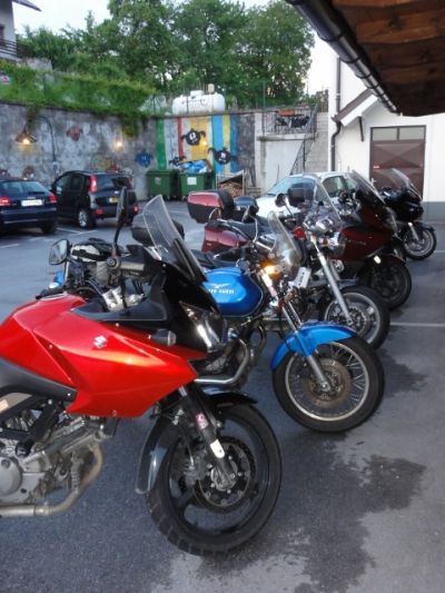 Weiter geht´s Richtung Bosnien (wo uns die Einreise verwährt wird, weil einige von uns keine grüne Versicherungskarte dabei hatten), wieder retour an der Küst, auf eine Insel mit Wein, auf eine Insel mit Geröll, mit dem Schiff wieder aufs Festland, quwer durchs Festland Richtung Novigrad (jenes bei Zadar wo der geübte Leser ja schon weis das wir zwei Jahre vorher dort waren), rauf nach Slowenien nach Rakek zum Wirt an der Eisenbahn, rauf nach Österreich wo wir dann am Katschberg noch den Fredi zwecks gebrochenem Gasseil verloren haben (der 6zylinderMandi hat ihm mit dem ÖAMTC Gefährt geleitschutz gegeben), der Rest verliert sich noch in Bad Ischl (weil der GuzziAndi geglaubt hat wir fahren über Mondsee), per Zufall treffen wir uns alle wieder fast zuhause wo der Wirt nicht mehr weit.