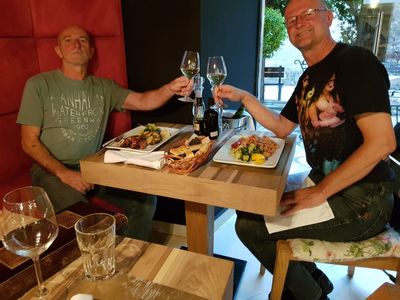 Im Hotel, beim Annamirl sind wir wieder einmal gut aufgehoben. Weil die Fähre erst am Mittag fährt und schneidige Manda ja immer drawig sind, wird die Halbinsel am nächsten Tag wieder zurück aufs Festland gefahren. Küstenstraße, windig, Rijeka, sehr heiß, Istrien, sehr lieblich bis ins Slowenische.