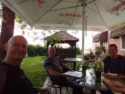 Im Isonzotal sitzt man wieder sehr idyllisch in der Abendsonne. Italien hat dann eine gründliche Dusche, während der Fahrt, für uns bereit. Über den Plöckenpass auf einen schnellen Kaffee bei der Lieblingswirtin in Kötschach geht die Reise durch das Lesachtal, nicht weniger holprig als in Bosnien.